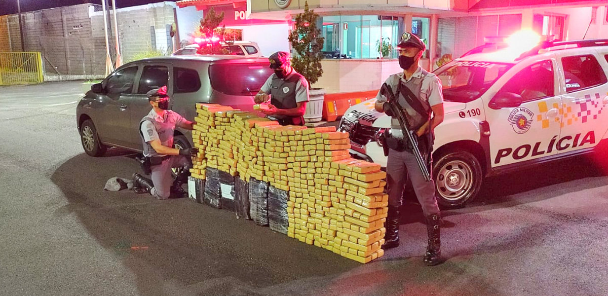 A Polícia Rodoviária Estadual apreendeu ontem à noite, em Marília, mais de 447 quilos de maconha. Duas pessoas foram presas em flagrante. A droga estava sendo transportada em um utilitário cujo motorista ainda tentou fugir, mas não conseguiu.
