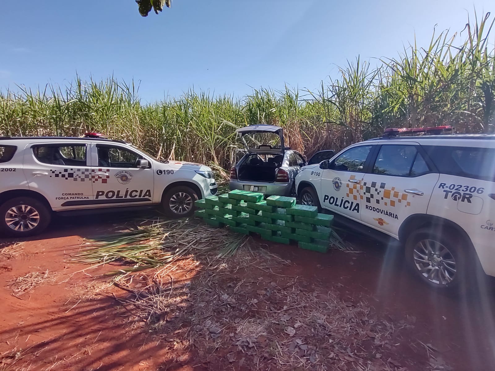 Equipes do TOR (Tático Ostensivo Rodoviário) perseguiam um GM/Astra, placas do Mercosul, cujo motorista ao perceber que não iria escapar, resolveu abandonar o veículo e fugir no meio de um canavial.