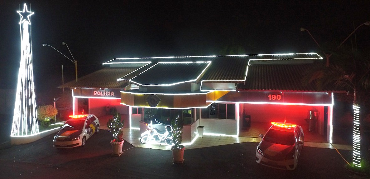 A base, localizada na rodovia do Contorno, recebeu uma decoração natalina especial.