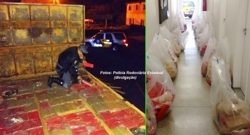 A Polícia Rodoviária Estadual de Assis apreendeu ontem à noite quase uma tonelada de maconha. A droga estava escondida no fundo falso de uma carreta tipo bi-