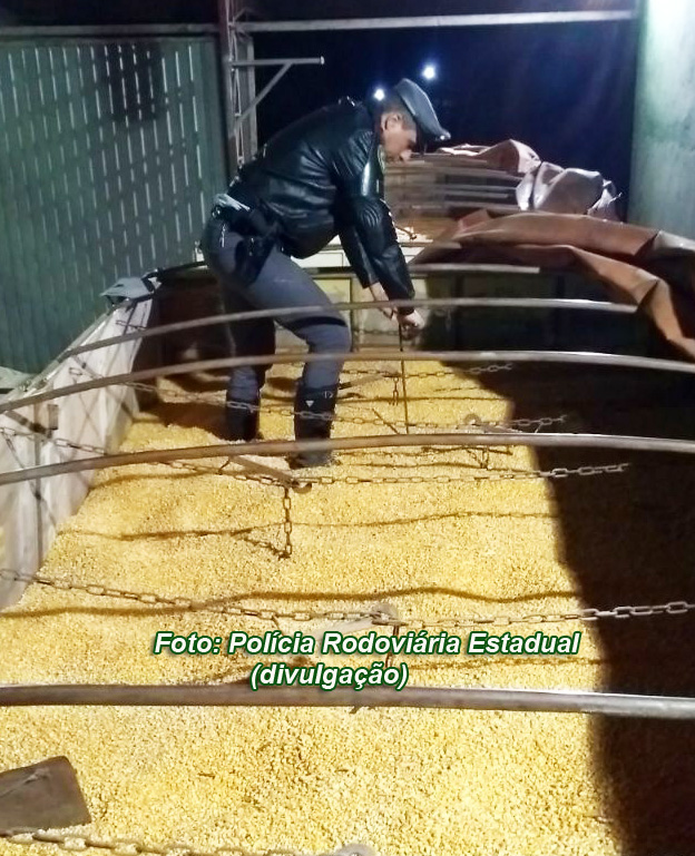 A carreta seguia com destino a São Paulo. No meio do milho muita droga.