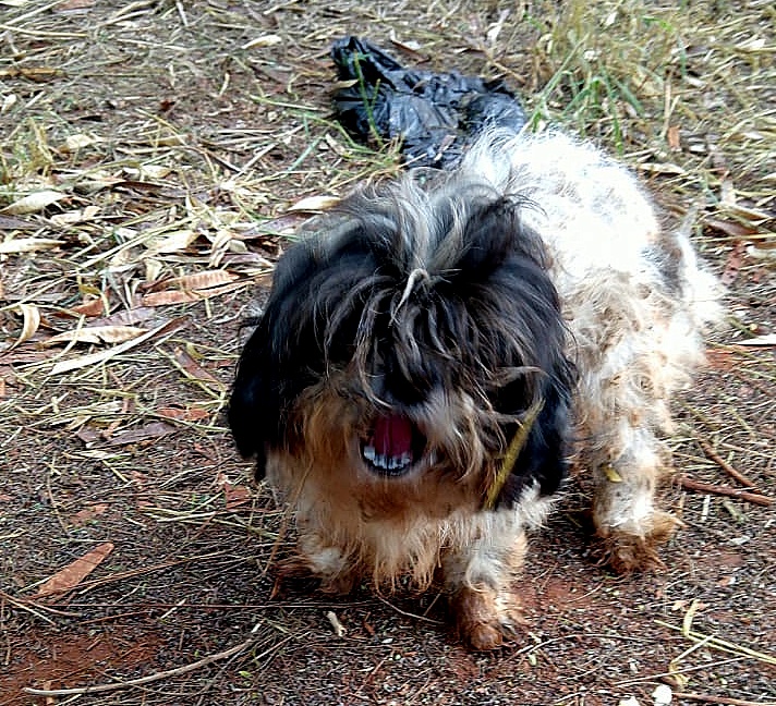 Durante o patrulhamento, eles perceberam que, às margens da rodovia, havia um cãozinho da raça Shih-tzu perdido e preso na canaleta de captação de águas pluviais, o que poderia causar até causar um acidente.