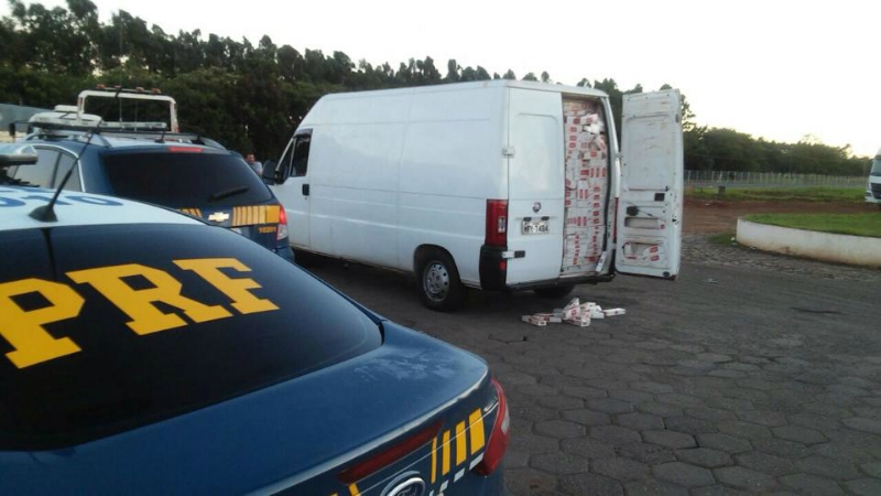 Desconfiados, os inspetores da PRF resolveram averiguar o compartimento de cargas do utilitário, e lograram êxito ao encontrarem mais de 100 caixas de cigarro de origem estrangeira, sem qualquer documentação.