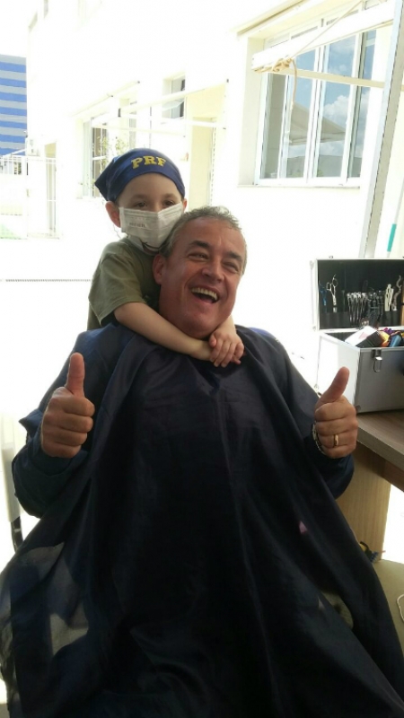 cabelos. Essa atitude faz com que a criança se veja como semelhante ao policial, que no imaginário infantil é destemido, forte e corajoso, adjetivos essenciais para enfrentar essa enfermidade que acomete as crianças no início da vida.