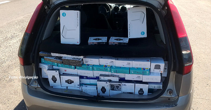 Os equipamentos eletrônicos (cerca de 300 unidades) estavam no porta-malas e no banco traseiro do automóvel. Entre os objetos estavam smartwatches, roteadores e outros dispositivos eletrônicos.