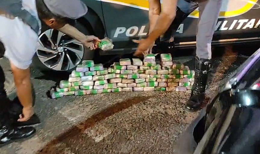 Um motorista foi preso em flagrante pela Polícia Rodoviária Estadual transportando 76 tabletes de maconha escondidos no estepe de uma caminhonete. Ele confessou que receberia R$ 4 mil pelo transporte do entorpecente.