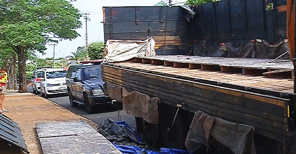 A apreensão ocorreu depois que um policial militar, vindo de Castilho para Andradina, viu a viatura parada no acostamento da rodovia, próximo a um posto de combustíveis. No pátio, estavam um caminhão amarelo, um Celta prata e seis pessoas ao redor dos veículos.
