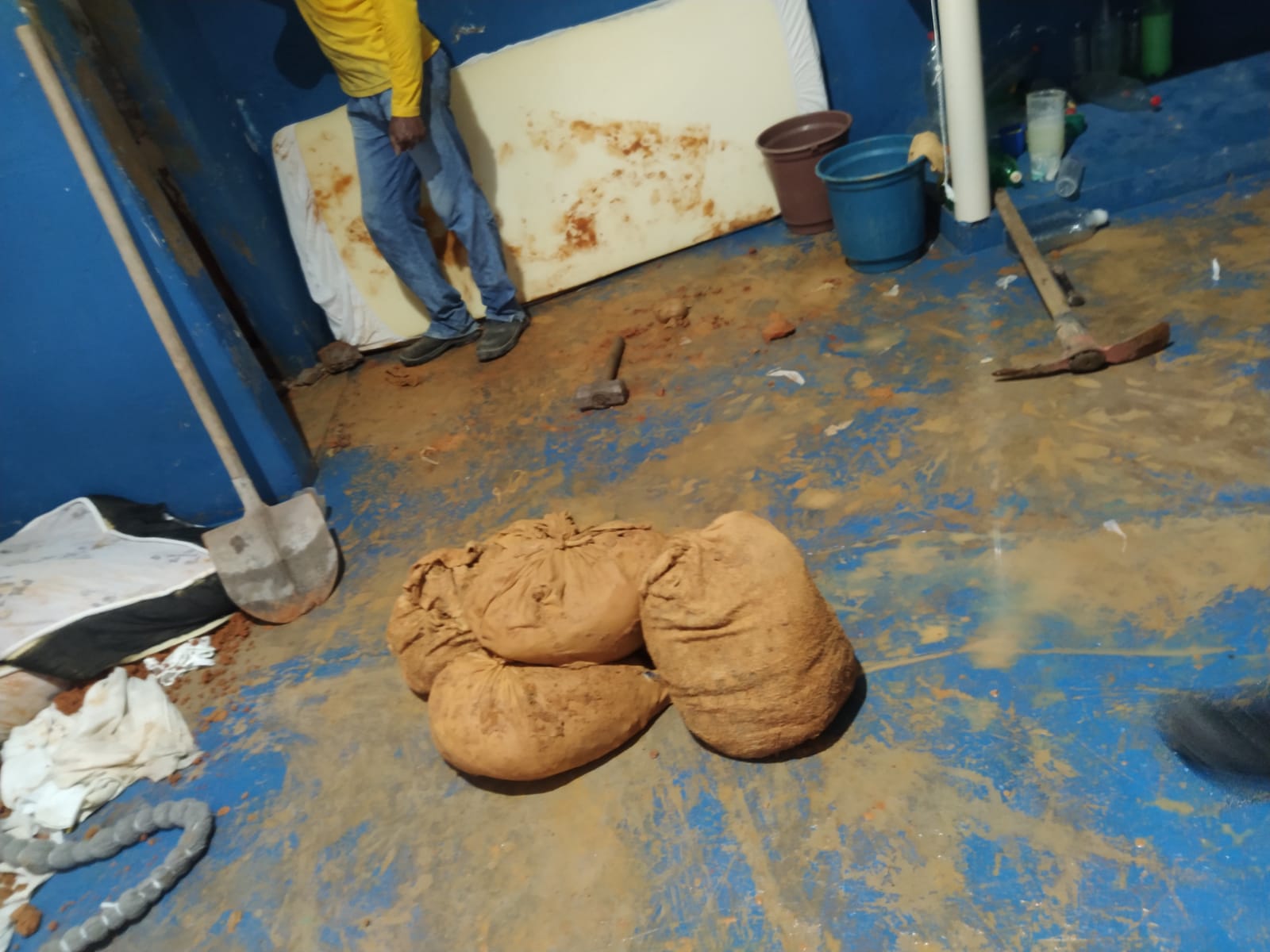 Os policiais penais que estavam de plantão realizavam vistoria nas celas, quando avistaram terra no chão e decidiram entrar no local.
