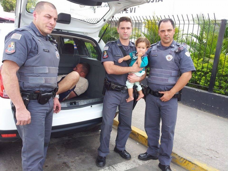 O pai da criança, que já tinha diversas passagens (artigo 157 - roubo), foi preso e levado para o Distrito Policial.