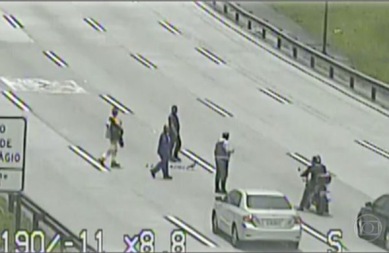 Policiais e funcionários da concessionária CCR Via Oeste pararam os carros para que uma família de patos silvestres atravessasse a rodovia em segurança. A estrada ficou para por alguns minutos até que a mamãe pata e seus 15 filhotes chegassem do outro lado da pista. A travessia aconteceu no Km 321 da rodovia, na região de Baruerí.