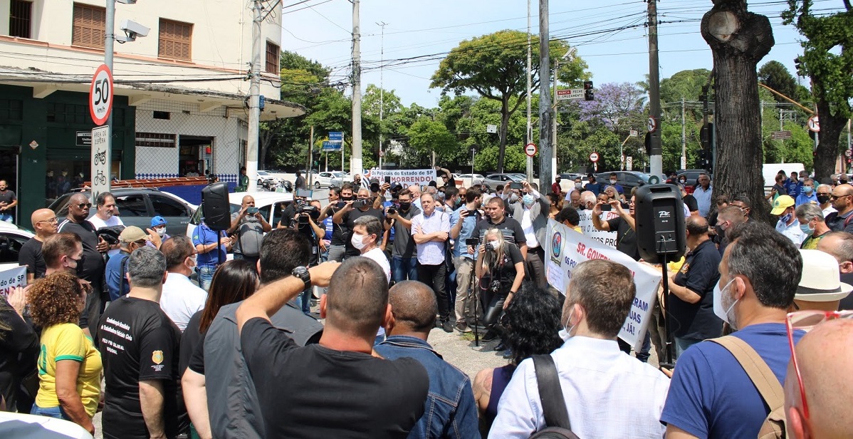 A Associação de Oficiais Militares do Estado de São Paulo em Defesa da Polícia Militar (DEFENDA PM) e outras entidades representativas das polícias Técnico-Científica, Civil e Penal de São Paulo realizaram uma manifestação para cobrar reajuste salarial e valorização das classes em frente ao 1° Batalhão de Polícia de Choque (ROTA).
