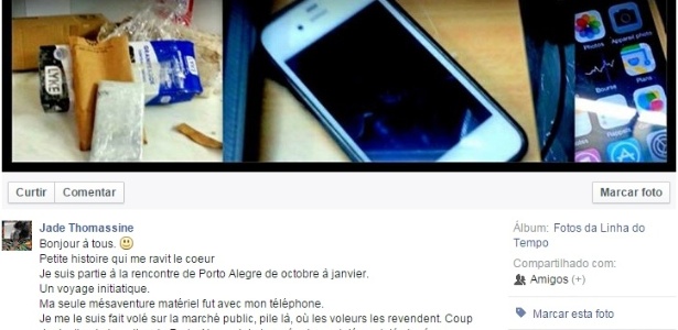 Como o homem não tinha o telefone nem o contato da francesa, o policial foi para o Facebook, onde levou 15 dias para achar a mulher e conseguir o endereço dela. Ele pagou 70 reais e enviou o aparelho pelos correios.Jade o citou em uma publicação no Facebook: