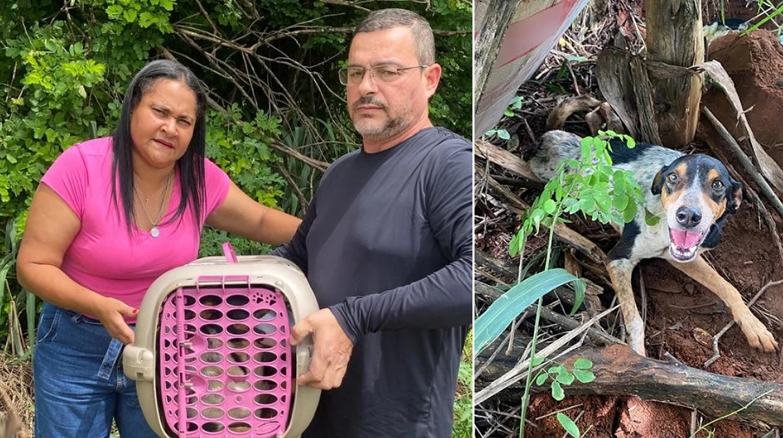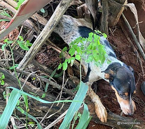 Uma pessoa que passava pelo local (uma propriedade rural na seção Glória I) ouviu choro de um cachorro (foto).