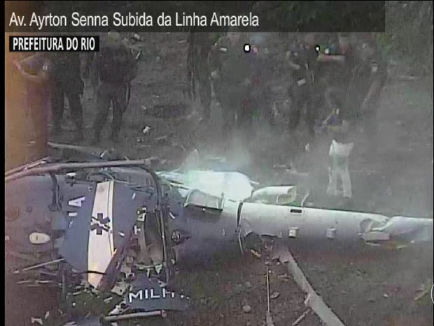 Também no sábado, um helicóptero da PM que auxiliava a operação caiu na comunidade. Os quatro policias que estavam a bordo morreram. Ontem, após uma cerimônia em homenagem aos policiais mortos, o secretário de Segurança, Roberto Sá, disse que as causas da queda do helicóptero ainda estão sendo apuradas e que é cedo para qualquer conclusão, mas que, até o momento, a perícia não havia encontrado perfurações por arma de fogo.