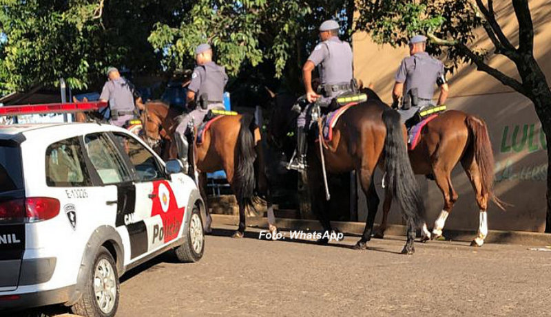 A operação conta com apoio do helicóptero Águia, que veio de Bauru, além do Canil e Cavalaria da Força Tática.