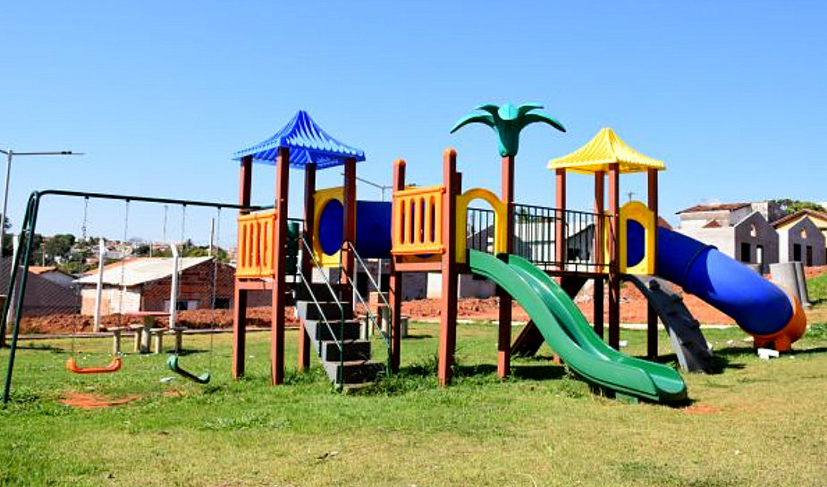 No caso da área de lazer ao lado da quadra poliesportiva, além dos playgrounds (foto), houve investimento em um novo gramado e iluminação, que deixaram o espaço mais aconchegante.