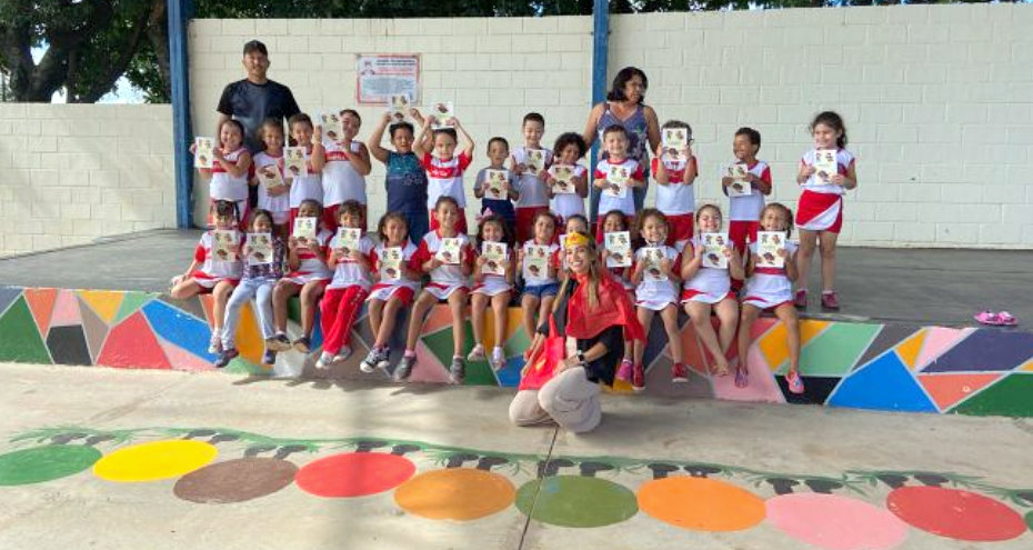 Durante a leitura, as crianças puderam compreender de forma lúdica como a alimentação saudável traz benefícios à saúde e como as escolhas alimentares afetam o desempenho físico e mental.