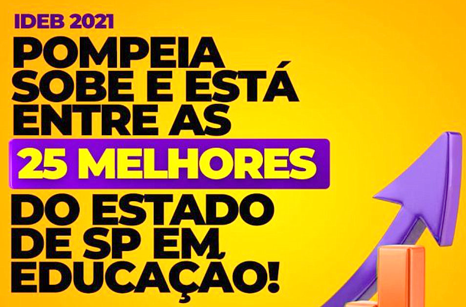 O município de Pompeia obteve nota 7,0 (referente aos anos iniciais do ensino fundamental, do 1º ao 5º ano) conforme Índice de Desenvolvimento da Educação Básica (IDEB/2021), divulgado pelo MEC.