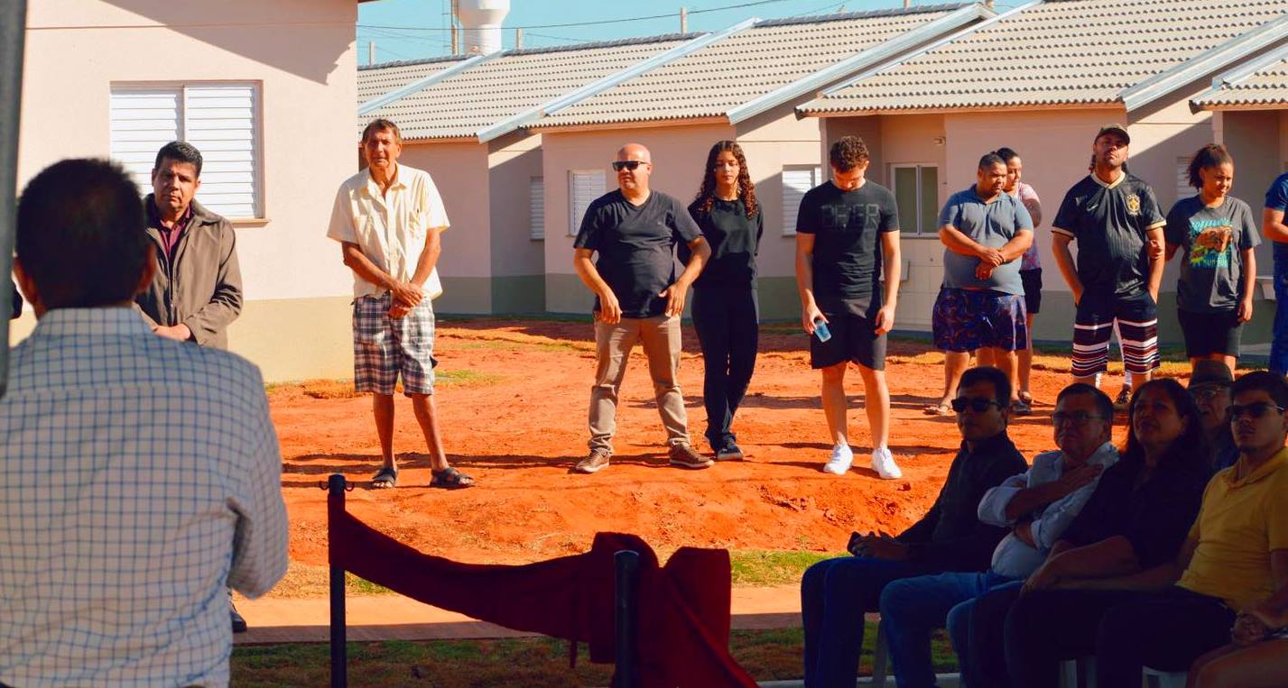 Entre as autoridades, estiveram no evento a presidente do Fundo Social, Marlene França, do Presidente da Câmara, Jorginho Chicarelli, da responsável pelas vendas do Residencial, Roberta Botter, do representante da Caixa, Fernando Domingues e de Luiz Gustavo, empresário da Menin Engenharia e responsável pelo residencial.