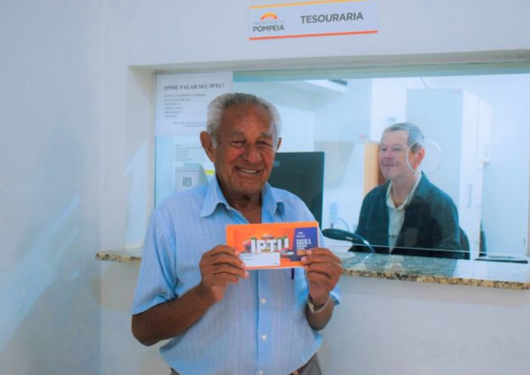 O sr. Ethelino Figueiredo Ferreira, de 92 anos e que há mais de 70 anos reside em Pompeia, deu um exemplo de cidadania e contribuição para com o desenvolvimento da cidade. Ele já garantiu o pagamento antecipado de suas parcelas do IPTU (Imposto Predial e Territorial Urbano), conquistando um desconto especial de 2%.