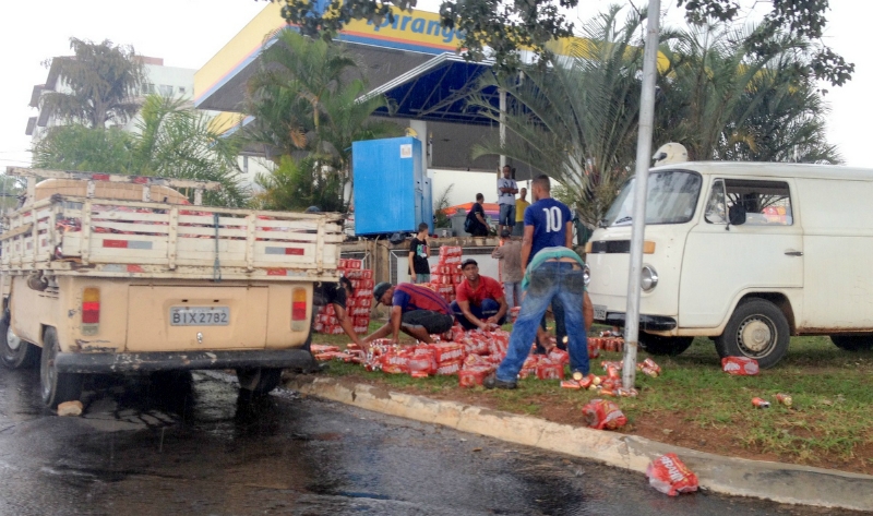 A Polícia Rodoviária Estadual tentou restringir o acesso da multidão, o que não foi possível. Dezenas de pessoas literalmente encheram seus carros, caminhonetes e até mesmo motos e bicicletas com as latas e fardos que estavam em bom estado.