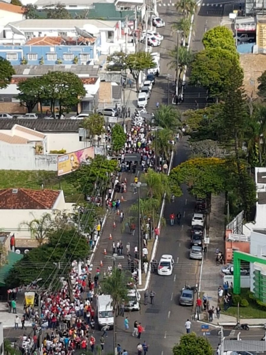 Uma multidão se aglomera neste momento (10h50) na avenida Rio Branco em Marília na espera da Tocha Olímpica dos jogos Rio 2016.