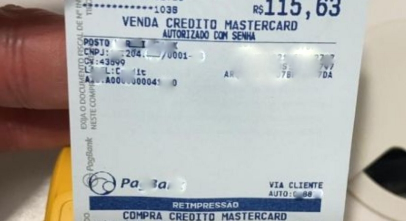 A máquina de cartão que foi apreendida trazia o registro da última venda realizada ao valor de R$ 115,63, embora nenhum funcionário tenha sido flagrado abastecendo veículos.