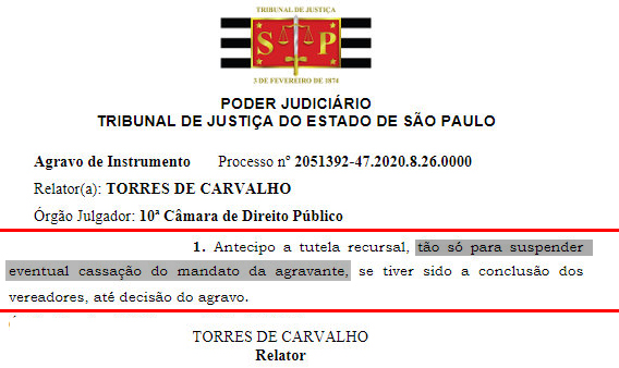 Nesta segunda-feira, a defesa entrou com recurso no Tribunal de Justiça e conseguiu decisão favorável, conforme despacho do desembargador e relator do processo, Torres da Carvalho, até a decisão final do agravo de instrumento.