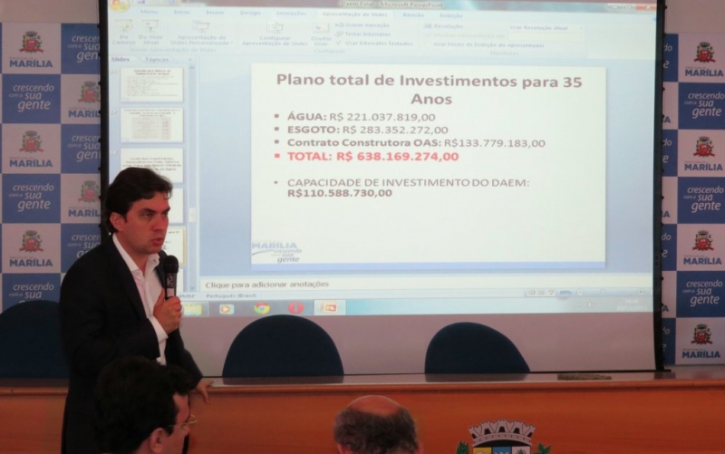 INVESTIMENTOS - Os estudos que levaram a essa tomada de decisão duraram cerca de um ano. De acordo com a Prefeitura, nos próximos 35 anos serão necessários investimentos de R$ 638 milhões para os serviços de água e tratamento do esgoto, mas neste mesmo período, o DAEM só terá "capacidade financeira" de R$ 110,5 milhões.