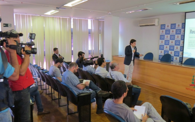 Antes de anunciar a concessão dos serviços do DAEM, o prefeito Vinicius Camarinha fez um relato da situação econômica tanto nacional como também do município. Este ano, por exemplo, até agora ocorreu uma perda da receitas no montante de R$ 8,8 milhões.