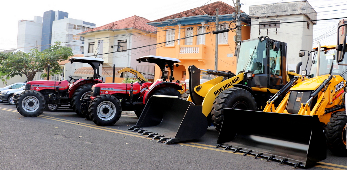 MEIO AMBIENTE E LIMPEZA PÚBLICA – quatro caminhões para coleta de lixo, quatro caminhões coletores Truck, três caminhões coletores Toco, dois caminhões carroceria com cabine complementar, um caminhão Basculante Truck, um caminhão Basculante Toco, uma pá carregadeira, uma retroescavadeira, uma minicarregadeira, dois tratores com Roçadeira, um triturador de galhos, quatro caminhonetes Saveiro, dois tratores Giro O e 12 motos (total de 39).
