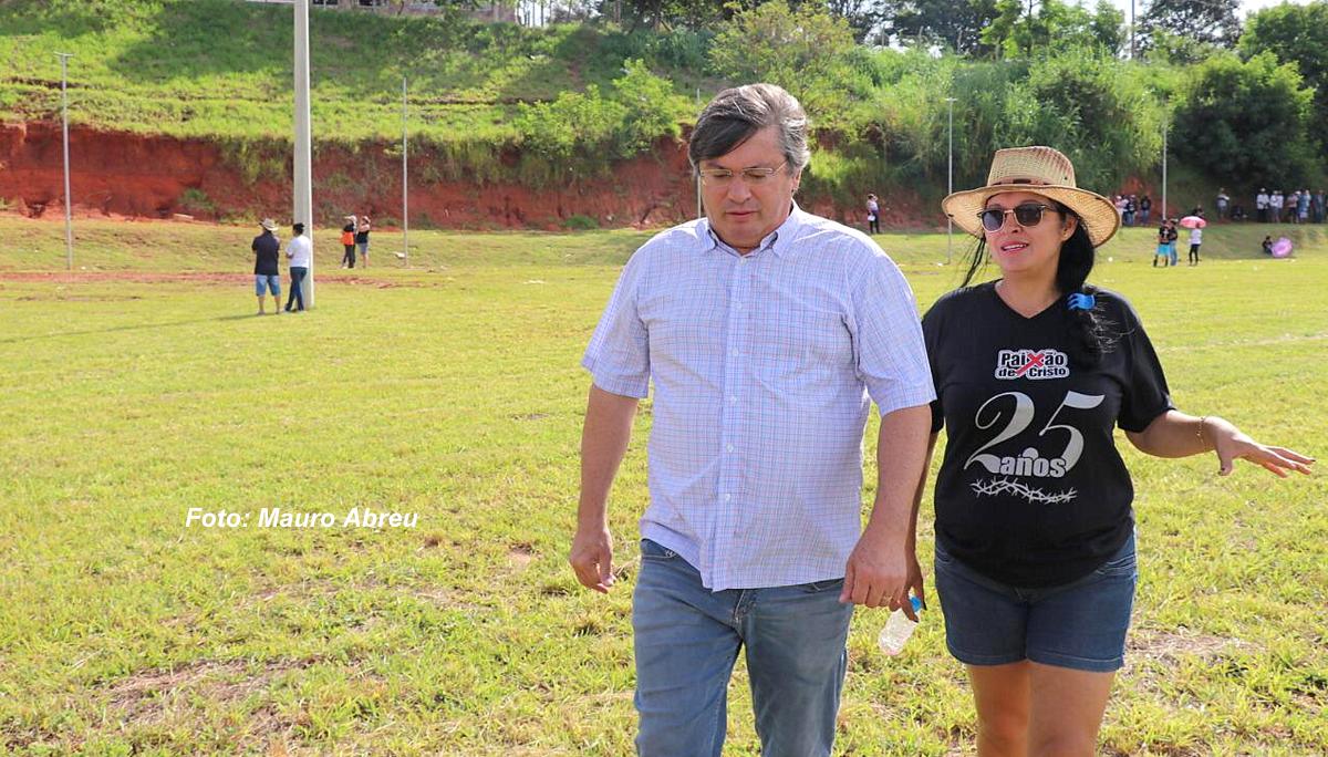 Prefeito Daniel Alonso com Sandra Farias, Coordenadora do Grupo de Teatro.