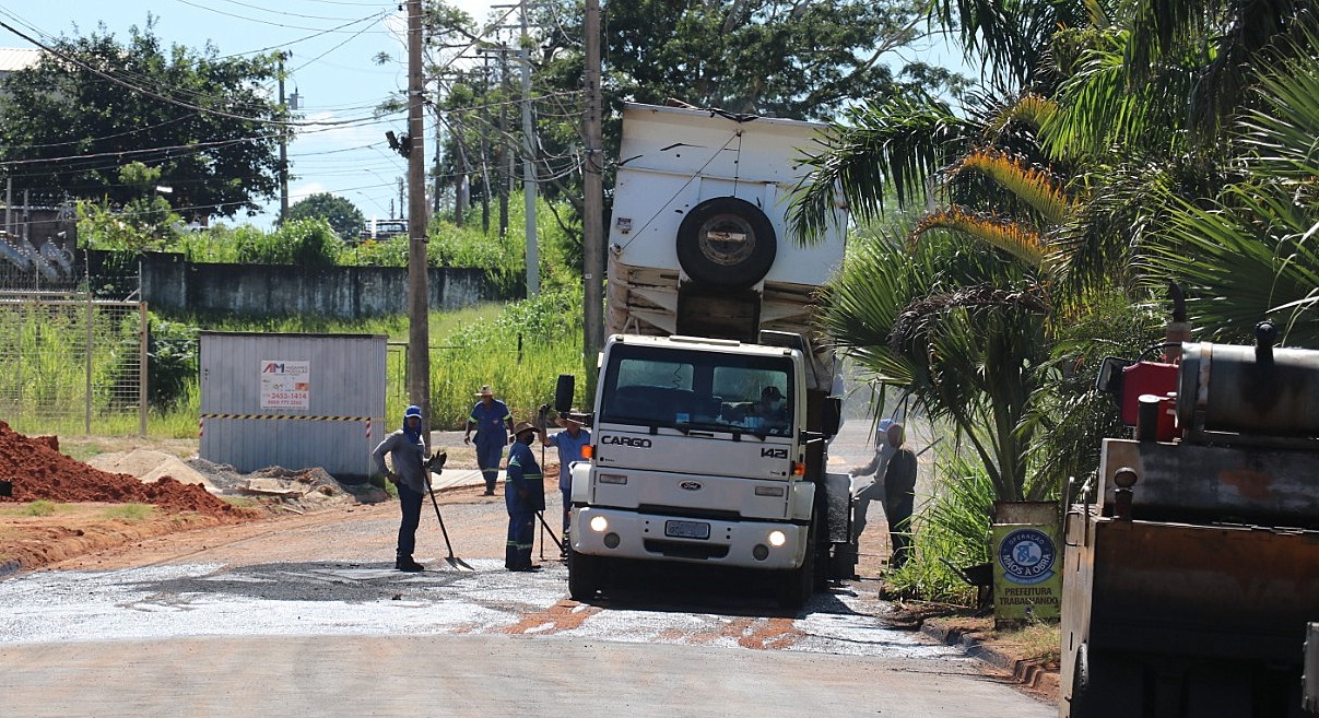 A obra ocorre entre as ruas Ari Domingues e Diego Terrão Fernandes, com total de 876 m² de pavimentação e 1.486,95 m² de recapeamento.