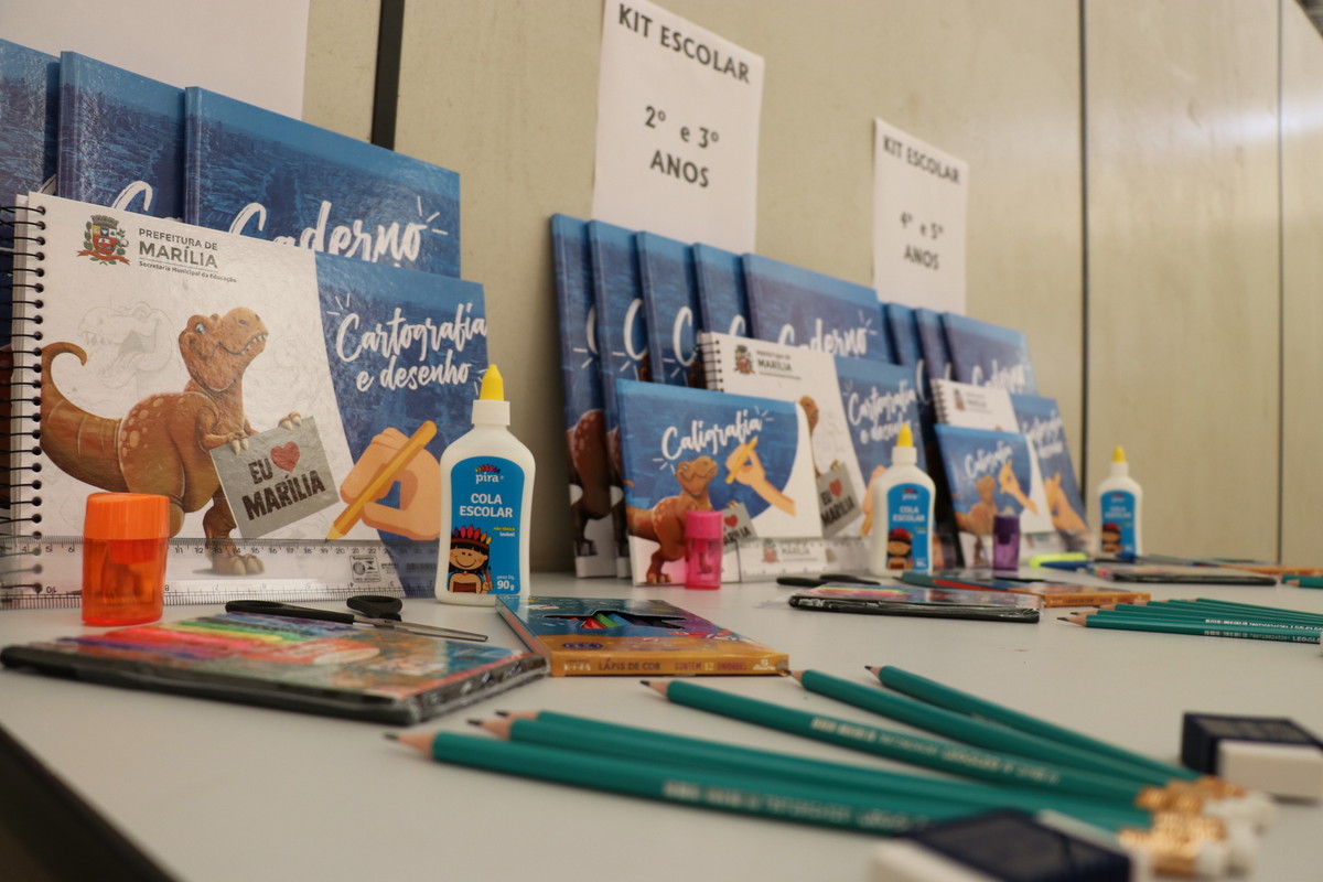 Os kits serão entregues nas próprias unidades escolares, sendo que todos os alunos do Ensino Fundamental (1º ao 5º ano) estarão recebendo o material. Já para a Educação Infantil, apenas as turmas de Nível I e Nível II não têm o kit, pois são bebês mais novos – de 4 meses até um ano e dois meses de idade. A partir do Nível III, mais Maternal I e II e Infantil I e II todos terão o seu kit escolar.