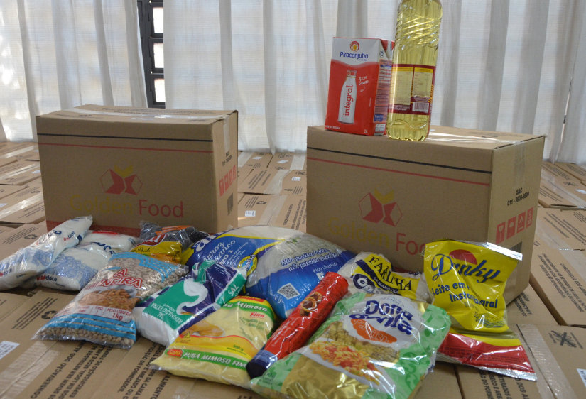Cada kit de alimentação é composto por 13 itens: açúcar, arroz, feijão preto, feijão carioca, óleo, sal, biscoito, macarrão parafuso, farinha de mandioca, fubá, leite em pó, leite UHT e achocolatado.
