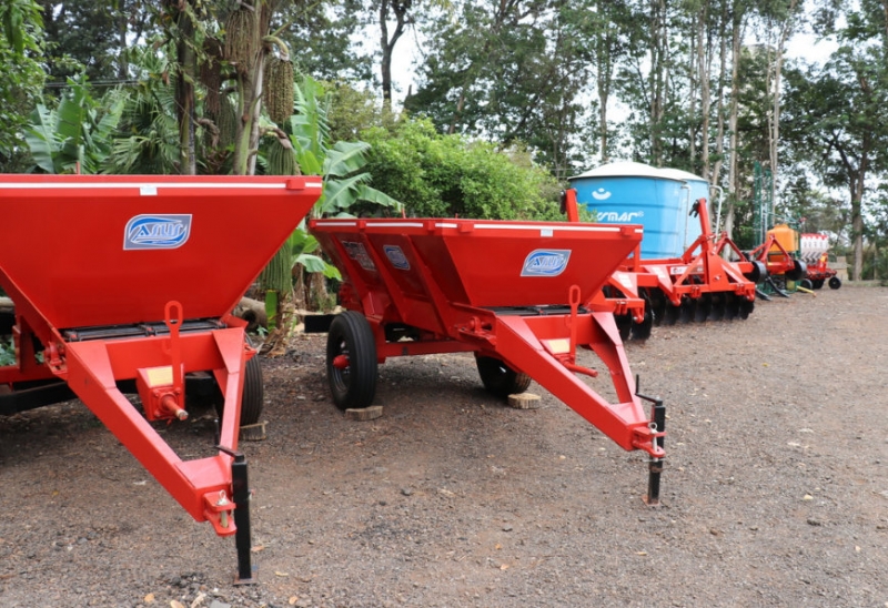 A calcareadeira de 6 m³, uma calcareadeira de 3 m³, duas grades aradoras, dois subsolares, um pulverizador e uma semeadeira, tem valor estimado de R$ 200 mil.