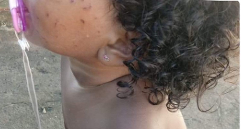 Ao chegar na creche, a tia encontrou a criança com o rosto todo machucado. A menina também tinha machucados nos braços.