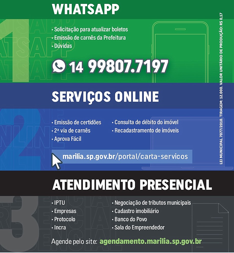 O Ganha Tempo Municipal fez mais de 120 mil atendimentos (120.132) , durante o primeiro semestre deste ano, segundo balanço divulgado pela Secretaria Municipal da Administração de Marília.