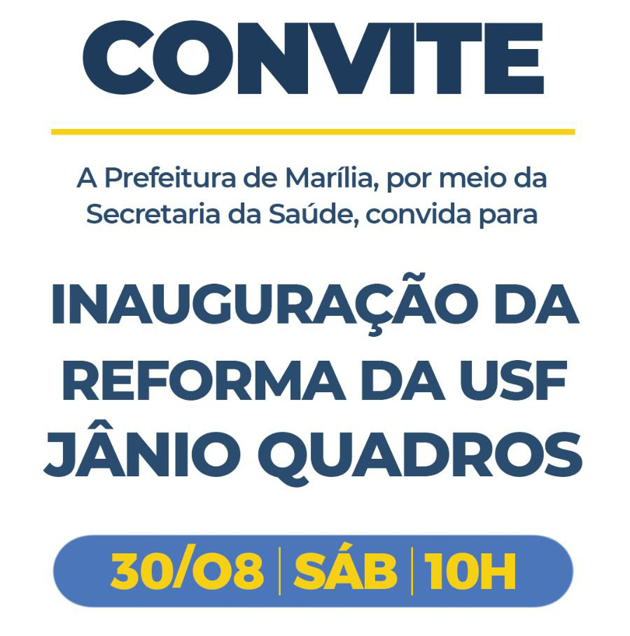 A Prefeitura de Marília vai entregar no sábado (30), a revitalização da Unidade de Saúde da Família (USF) Jânio Quadros “Jairo Florêncio Carvalho”, na zona Norte. Das 12 obras em andamento na área da saúde, esta será a quarta a ser concluídas pela gestão do prefeito Vinicius Camarinha. Antes já haviam sido inauguradas as reformas da USF Vila Barros, UPA Sul “Sinara Mesquita Serva” e USF Toffoli.