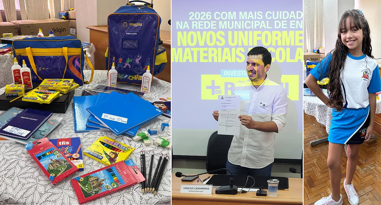 A Secretaria Municipal da Educação de Marília vai entregar, já no início do ano letivo de 2026, os uniformes de verão e de inverno e também os kits escolares para 19 mil alunos da Rede Municipal de Ensino. Com investimentos de R$ 13,6 milhões, o anúncio da entrega foi feito pelo prefeito Vinicius Camarinha em solenidade ocorrida nesta segunda-feira, no auditório do Gabinete.