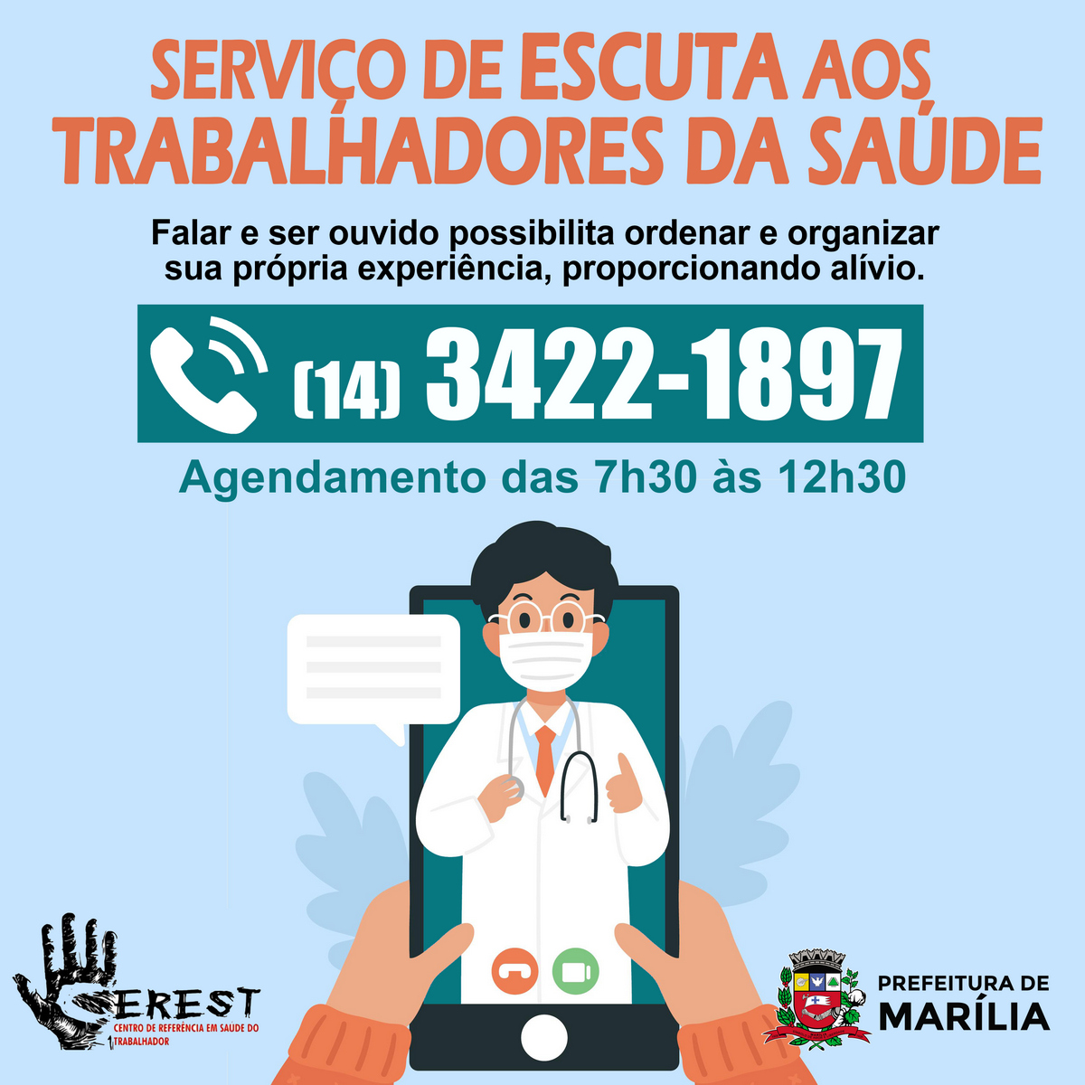 A Prefeitura de Marília lançou o Serviço de Escuta aos Trabalhadores da Saúde. O projeto foi desenvolvido pelo Cerest (Centro de Referência em Saúde do Trabalhador) e pela equipe de saúde mental da Secretaria Municipal de Saúde.