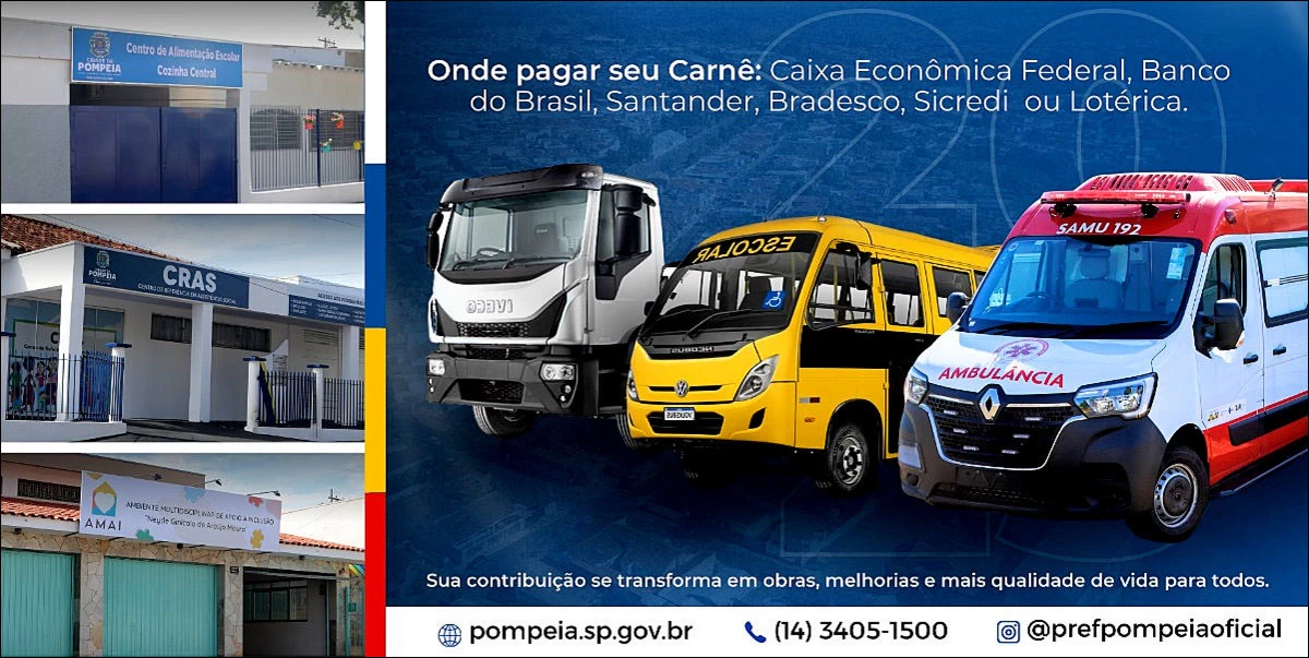 “Os recursos arrecadados com o IPTU retornam para a população em forma de melhorias na infraestrutura, saúde, educação e outros serviços essenciais. Manter o imposto em dia é uma forma de contribuir diretamente para o desenvolvimento de Pompeia”, destacou Cristiano.