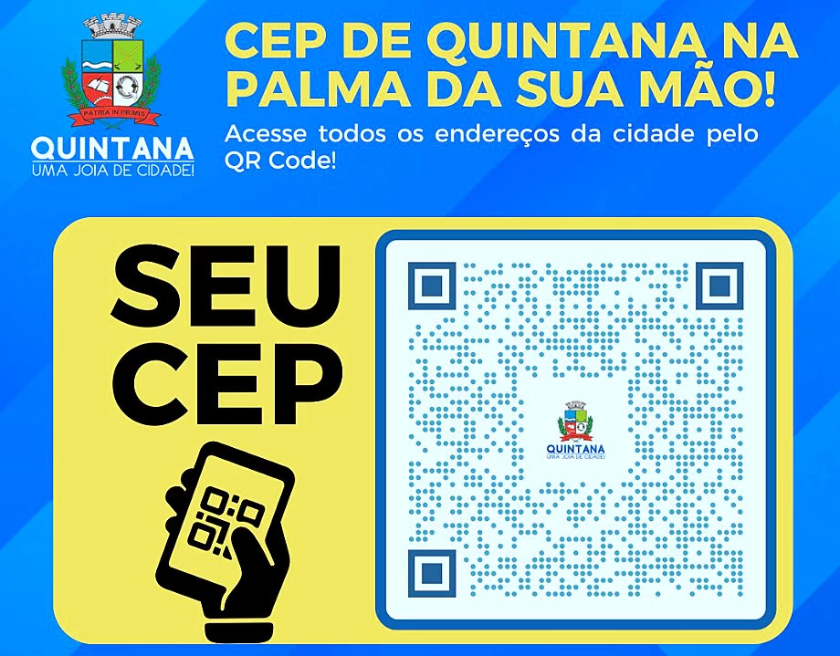 Os moradores de Quintana passam a contar, a partir de agora, com uma ferramenta gratuita para consultar os respectivos CEPs (Código de Endereçamento Postal) dos endereços. A ferramenta foi elaborada pela Prefeitura de Quintana, por meio da Secretaria de Comunicação.