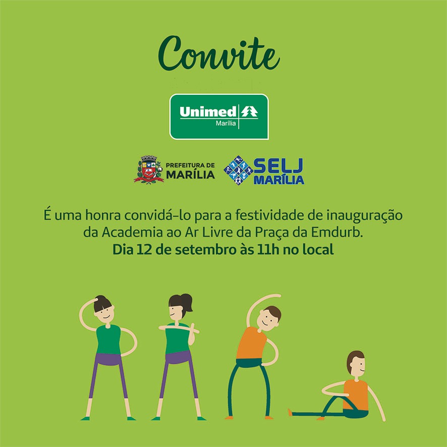 “Quero agradecer, em nome do prefeito Daniel Alonso, a diretoria da Unimed Marília na pessoa do Dr. Marangão pela parceria e pelo presente à população. Convidado a comunidade para prestigiar a reinauguração da academia da Praça da Emdurb na próxima quarta-feira, às 11h. A academia é para toda a população”, disse Nascimento.