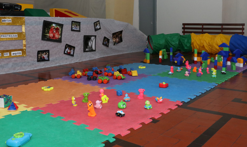 O kit é composto por diversos brinquedos, como bandinha infantil, playground espumado, túnel, big blocos para construção, centopeia, carrinhos, bonecas, pelúcias e bichinhos de vinil.