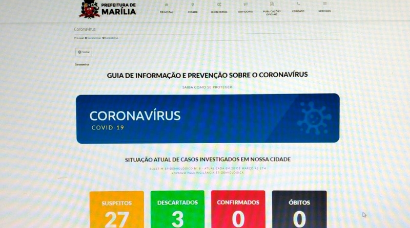 A Prefeitura de Marília lançou um site exclusivo (marilia.sp.gov.br/coronavirus) com informações sobre o Coronavírus em Marília. É uma das primeiras cidades do interior que lançou a plataforma com o mapeamento georreferenciado da doença.