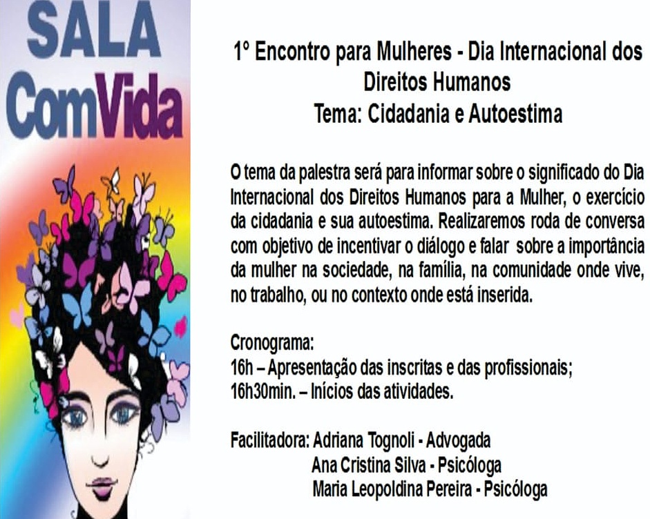 O tema da palestra será para informar o significado do Dia Internacional dos Direitos Humanos para Mulher e o exercício da cidadania e sua autoestima.