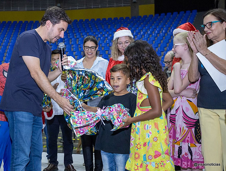 Evento no ginásio Neusa Galetti distribuiu cerca de 1.500 brinquedos e mais de 790 cestas básicas, simbolizando o cuidado e amor ao próximo