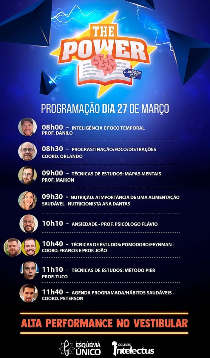 Como a temporada deste ano está apenas começando e com objetivo de oferer aos candidatos informações e dicas importantes para obter uma alta performace, os colégios Esquema Único de Marília e Intelectus realizam entre hoje e amanhã (sexta-feira e sábado) o evento "The Power".