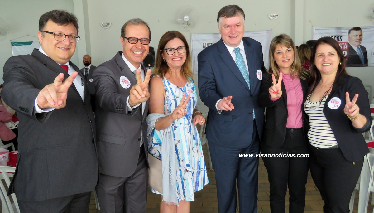 Marcos da Costa esteve acompanhado também da candidata a vice-presidente na sua chapa, Gisele Fleury Germano de Lemos, da cidade de Jundiaí. É a primeira vez que uma mulher do interior de São Paulo concorre ao cargo, que será definido nas eleições internas, no dia 29 de novembro.
